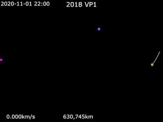2. ^ a b c d e f g h i "JPL Small-Body Database Browser: (2018 VP1)" (last observation: 2018-11-16; arc: 13 days). Jet Propulsion Laboratory. Archived from the original on 21 July 2019. Retrieved 22 July 2019.