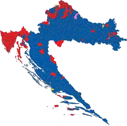 Results of the election based on the majority of votes in each municipality of Croatia and Zagreb's four electoral districts