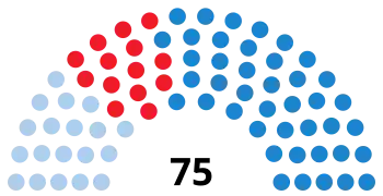 The table below shows the composition of the parliamentary groups in the chamber at the time of dissolution.[43]