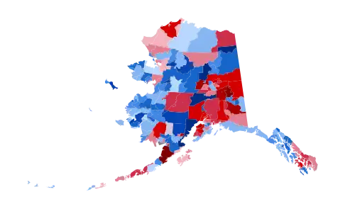 Alaska shifted 4.67% to the Democratic nominee compared to the 2016 election. The state ultimately weighed in as 14.51 percentage points more Republican than the national average in 2020. Biden was the first Democratic presidential candidate to win Anchorage since Lyndon B. Johnson in 1964, and the first Democrat to receive a majority in Haines Borough since 1964.