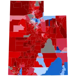 Per exit polls by the Associated Press, Trump's strength in Utah came from Mormons. 53% of voters identified as Mormons, and Trump received 72% of their votes.[8] Trump also won the suburban areas, which make up 57% of the state, with 54% of the vote.[8]