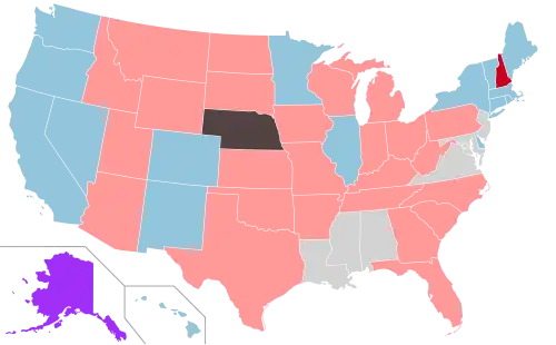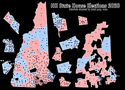 Following the election, Republicans controlled redistricting in 20 state governments, totaling 188 House districts, whereas Democrats had control in states with a total of 73 districts.[2] Overall, these elections saw the fewest partisan changes in state legislatures since 1944.[3]