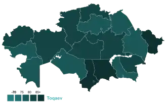 417. ^ a b "The results of voter turnout and preliminary results of voting in the early elections of the President of the Republic of Kazakhstan". Central Election Commission. 21 November 2022. Retrieved 17 January 2023.