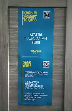420. ^ Досымшалова, Гүлнара (22 November 2022). "Қазақстанда президент сайлауының қорытындысы жарияланды". Tengrinews.kz (in Kazakh). Retrieved 17 January 2023.