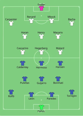 1. ^ Each team was given only three opportunities to make substitutions, with a fourth opportunity in extra time, excluding substitutions made at half-time, before the start of extra time and at half-time in extra time.