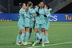 On 14 December, sports media had reported that Giráldez would not continue as coach of Barcelona after the end of the season, adding that he had received a large offer from a team in the National Women's Soccer League (NWSL).[132][133] Giráldez confirmed his departure in a press conference on 18 December.[10] He then managed the team to his 100th victory in charge of them on 21 December,[134] ending the year with a dominant 7–0 win over Rosengård in the return leg of their Champions League group stage fixture and qualifying for the quarter-finals with two games to spare. The first goal was from Walsh, surprisingly scoring in consecutive matches, and the seventh was an own goal from Wik, just as she had done in the previous match.[135][136]