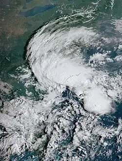 After nearly three weeks of inactivity, the longest in over fifty years at that point in the season,[42] Hurricane Francine formed on September 9.[43] Tropical Storm Gordon followed suit two days later on September 11,[44] with Francine making landfall in Louisiana as a Category 2 system later that day.[43] Four systems developed during the final week of September, starting with Hurricane Helene on September 24. The system affected the Yucatán Peninsula on September 25, before making landfall in the Big Bend region of Florida late on September 26 as a Category 4 hurricane, where it rapidly weakened into a tropical depression on September 27.[45] Hurricane Isaac formed on September 26 and later peaked as a Category 2 hurricane.[46] On September 27, Tropical Storm Joyce formed just west of the Cabo Verde Islands.[47] Activity in September ended with the formation of Hurricane Kirk on September 29, which reached its peak intensity on October 4.[48]