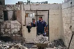 A state of emergency was declared on 3 February,[5] while Boric declared two days of national mourning. On 3 February, Boric went in a flyover over the affected areas before visiting a school that had been converted into a shelter for those displaced by the fires. He also ordered the conversion of the official presidential summer residence, the Palace of Cerro Castillo, in Viña del Mar, into a temporary leisure center for affected children[45] and the donation of furniture that had been used in the 2023 Pan American Games, as well as the forgiveness of the water bills of 9,200 households.[44]