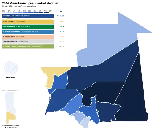 - ^ "Mauritania's President Mohamed Ould Ghazouani on track for reelection, provisional results show". Associated Press. 30 June 2024. Retrieved 30 June 2024.