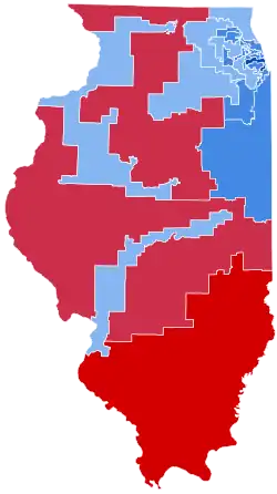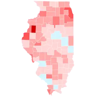 The 2024 presidential election resulted in Kamala Harris carrying the state of Illinois, a historic Democratic stronghold in the Midwest. Illinois has not been won by a Republican candidate at the presidential level since 1988 as a result of most of the population being concentrated in the Chicago metropolitan area. However, Illinois took a massive 6.1% shift towards the right from 2020.[29] This rightward shift was a result of Republicans making ground in the highly populated collar counties combined with low voter turn-out for Democrats in Cook County, home of Chicago.[30][31] Illinois's shift represents broader trends across the country with Donald Trump making improvements with key-demographics, such as Hispanics.[32] Donald Trump's improvement among most demographics can be attributed to people's concern regarding the state of the economy and the inflation rate.[33]