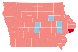 Iowa handed Republican Donald Trump a decisive victory, doing so by a margin of 219,741 votes. This election marks the third consecutive cycle in which Iowa voted for the Republican candidate in a presidential election. Notably, Trump improved his margins in 98 of 99 counties and gained significant support across all demographics, performing better in suburban, rural, and urban areas.[56] Trump became the first Republican to win Scott County since Ronald Reagan in 1984. This is the first election since 1968 that Iowa voted to the right of Alaska.