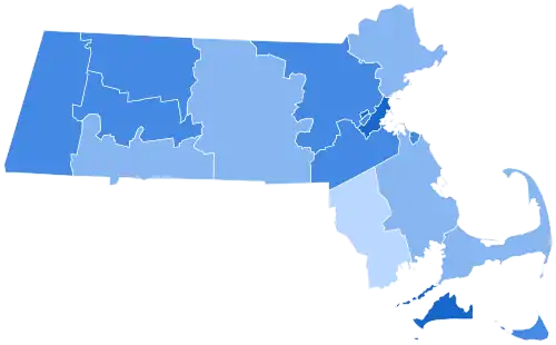 - ^ George H.W. Bush was the last Republican presidential nominee to win any counties in Massachusetts in 1988.