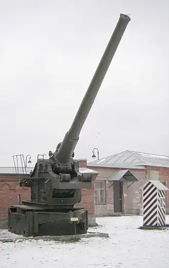 The 210 mm gun M1939 (Br-17) (Russian: 210-мм пушка образца 1939 года (Бр-17)) was a Czechoslovak heavy siege gun used by the Soviet Union during World War II. After the Germans occupied Czechoslovakia in March 1939 they took over the Škoda Works, which had been working on this design and a companion 305 mm howitzer. As a result of the Molotov–Ribbentrop Pact the Germans sold both designs to the Soviet Union. It is not entirely clear that Škoda actually built the weapons itself or merely supplied the blueprints.