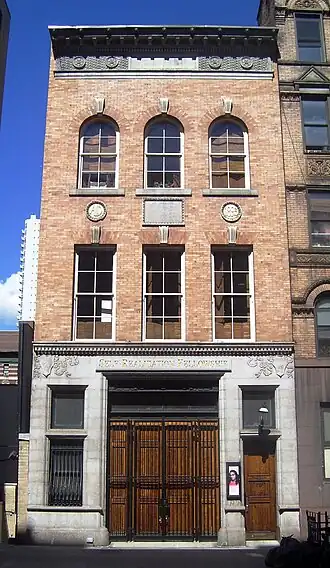 In 1993, the property was sold to the Self-Realization Fellowship, a religious organization founded by Paramahansa Yogananda, author of Autobiography of a Yogi.[13] The building was renovated and converted into the New York City Center of Self-Realization Fellowship. It contains two chapels, Sunday school rooms, a bookshop, a family room and office space.[14][15][16] The building is used for weekly meditation and devotional services.[17] Before purchasing its own building, the New York City Center of Self-Realization Fellowship had previously conducted services at a variety of locations, including the Unitarian Church, the Hotel Wellington and the Fisk Building.[18]