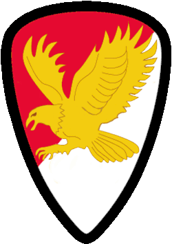 Shoulder Sleeve Insignia was a rounded heater shield divided in red and white colors and a black border. On the shield is a gold eagle with wings open in flight. The shoulder sleeve insignia was approved on 11 April 1997.
