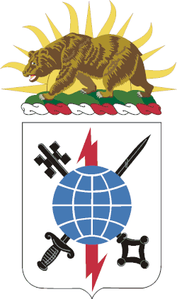 The 223rd Military Intelligence Battalion was constituted on 1 June 1991 in the California Army National Guard, and organized and Federally recognized with its headquarters at Fort Funston in San Francisco on 16 January 1992. On 1 September 1997, its Company E was allotted to the Massachusetts Army National Guard; the latter was reorganized and redesignated as Company D on 1 October 2001. The battalion was ordered to active duty on 10 February 2003 for the 2003 invasion of Iraq, attached to the 205th Military Intelligence Brigade.[2] The battalion returned to the United States and was released from active duty on 25 May 2004, reverting to state control.[3]