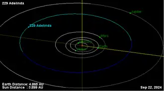1. ^ "229 Adelinda". JPL Small-Body Database. NASA/Jet Propulsion Laboratory. Retrieved 12 May 2016.