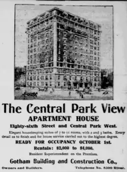 - ^ "Central Park West". New-York Tribune. Chroniclingamerica.loc.gov. September 23, 1906. p. 13. Archived from the original on February 3, 2014. Retrieved June 30, 2014.