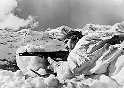 The division was originally intended for the newly forming 66th Army, but due to the growing crisis in the Caucasus this plan was shelved. In mid-August, the German 17th Army began trying to force the passes through the High Caucasus mountains to reach the coast of the Black Sea. The division was assigned to 46th Army in the Black Sea Group of Forces with orders to organize a credible defense of the Ossetian Military Road and the pass it traverses. In the event, this pass was not contested.[8] On September 23, Army Group A made another attempt to take the Black Sea port of Tuapse; at this time 46th Army was facing First Panzer Army's XXXIX Mountain Corps.[9]