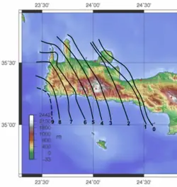 1. ^ a b Stiros, S. C. (2010). "The 8.5+ magnitude, AD365 earthquake in Crete: Coastal uplift, topography changes, archaeological and historical signature". Quaternary International. 216 (1–2): 54–63. Bibcode:2010QuInt.216...54S. doi:10.1016/j.quaint.2009.05.005.