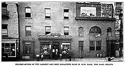 A club named the Briar Sweet Association rented the building in 1900.[44] A year later 57 Great Jones Street and 59 Great Jones Street were together used as a dance hall called New Brighton, a saloon called Little Naples, and a gang club run by the Paul Kelly Association.[45][46] New Brighton, Little Naples, and the club closed following a gang fight and murder at the buildings in 1905.[1][47]