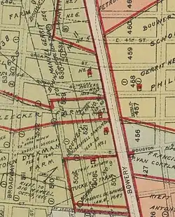 25. ^ George Washington Bromley (1911). "Plate 8; Bounded by W. 3Rd Street, Great Jones Street, E. 3Rd Street, Avenue A, Essex Street, Broome Street, And West Broadway" (Map). Atlas of the City of New York, Borough of Manhattan, Volume Two. Philadelphia, PA: G.W. Washington Co. Retrieved March 3, 2025.