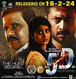 5D is a 2024 Indian Kannada-language suspense thriller film co-written and directed by S. Narayan. The film was produced by Swathi Kumar under the banner One To Hundred.[3] The film stars himself, Aditya and Aditi Prabhudeva.