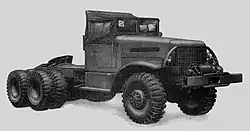 As artillery pieces were being towed more often by tracked vehicles, prime mover chassis became available for other uses. In 1945 White built 112 semi-tractors with a fifth wheel and heavier rated Timken axles. Tire size was 14.00×20. Maximum speed was 40 mph (64 km/h), the highest in the series. A 25,000 lb (11,000 kg) winch was mounted on the front.[6][18]