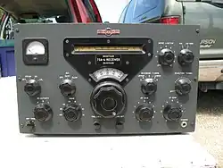 Both radios used vacuum tubes and employed Collins innovations including mechanical filters and permeability tuned oscillators.[a] The KWS-1 final amplifier use a pair of 4X150 power tubes and operated at a power input of one kilowatt, the maximum allowed under Federal Communications Commission (FCC) regulations at the time. The transmitter appearance matched the receiver, but its high voltage power supply was packaged in a separate pedestal.[3][4]