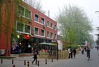 Fashionable clubs also sprang up such as Zhou Ying's "Vibes", known for its fetish nights. A former factory cafeteria became Yan Club[9] (仁俱乐部), owned by well-known Beijing socialite and writer Li Xuebing or "Bing Bing" (冰冰), also owner of Sanlitun's Jam House. Notable performers at Yan included Morcheeba in March 2003.