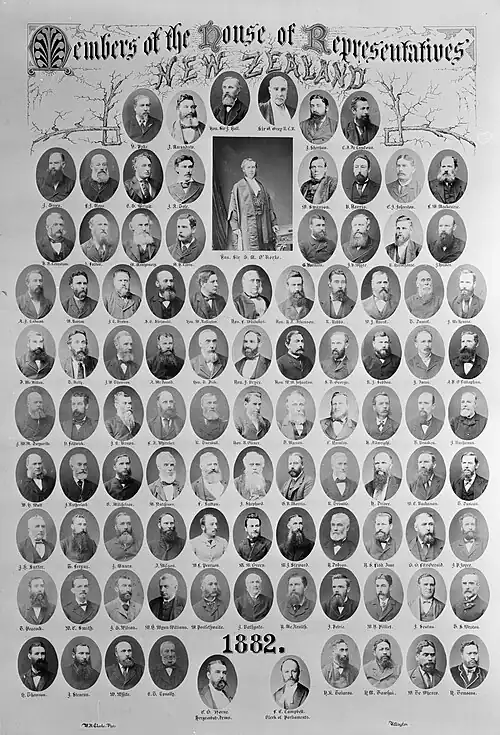 Ninety-one general and four Māori electorates were used for the 1881 elections, i.e. the previous multi-member electorates were abolished. The changes were the result of the Representation Act 1881.[5] The previous electoral redistribution was undertaken in 1875 for the 1875–1876 election. In the six years since, New Zealand's European population had increased by 65%. In the 1881 electoral redistribution, the House of Representatives increased the number of European representatives to 91 (up from 84 since the 1875–76 election). The number of Māori electorates was held at four. The House further decided that electorates should not have more than one representative, which led to 35 new electorates being formed: Ashburton, Auckland North, Awarua, Christchurch North, Christchurch South, Coromandel, Dunedin Central, Dunedin East, Dunedin South, Dunedin West, Foxton, Franklin North, Franklin South, Hawke's Bay, Hokonui, Inangahua, Kumara, Lincoln, Manukau, Moeraki, Peninsula, St Albans, Stanmore, Sydenham, Taranaki, Tauranga, Te Aro, Thorndon, Waimate, Waipawa, Wairarapa North, Wairarapa South, Waitotara, Wakanui, and Wellington South. In addition, two electorates that had previously been abolished were recreated: Bay of Islands and Oamaru.[6]