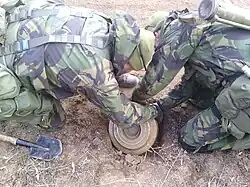 In September 2015, the regiment conducted mine clearance operations in the village of Krymske, Novoaidar Raion while simultaneously engaging the separatists in a battle, a soldier of the regiment (Oleksandr Oleksandrovych Mandybura) was killed and two were wounded in a landmine explosion.[26]