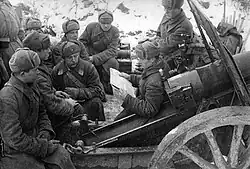 In July and August, the division was reorganized into the 82nd Motor Rifle Division again. Its 123rd Tank Regiment was used to form the 111th Tank Division, leaving the 82nd with the 210th, 250th, and 601st Motor Rifle Regiments and the 82nd Artillery Regiment. As a result of German advances following the beginning of their invasion of the Soviet Union, Operation Barbarossa, on 22 June, the 82nd was sent to the Western Front in October. It departed the Far East on 7 October and arrived at the front on 25 October. It was reinforced with the 27th Separate Tank Battalion, and fought in the Battle of Moscow as part of the 5th Army. The 82nd fought in fighting at Dorokhovo and in the capture of Mozhaysk. For its actions, the division was made an elite Guards unit, the 3rd Guards Motor Rifle Division, on 17 March 1942, and received the Order of the Red Banner.[1]