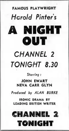 A Night Out is a 1961 Australian television play. It was based on A Night Out by Harold Pinter. It starred John Ewart and Richard Meikle.[4]