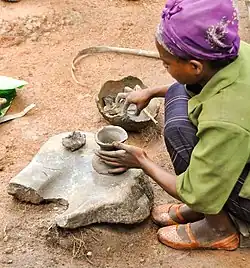 The Ari peoples of Ethiopia comрrise different occupational groups and their society is socially divided and stratified according to each Aari individual's respective occupation. The lower castes of the society are composed of potters, tanners and blacksmiths and collectively named as mana in the Aari language. Blacksmiths (faka mana)i who also do woodworking are marginalized and occupy an inferior position to tanners and potters (tila mana). Kantsa is the name given to the agriculturalist caste which holds a privileged position in the society. Intermarriage between mana and katsa is forbidden and considered as taboo according to Ari customs. The occupational segregation and caste-based endogamy practiced among the Ari have been revealed by advances in archaeogenetics to be one the oldest continuous caste systems in existence.[7] After the introduction of Christianity the social division between Christian Aari belonging to differing castes has been reported to have become less important. More of the societies make agriculture their livelihood, and most of them practice mixed farming.[8]
