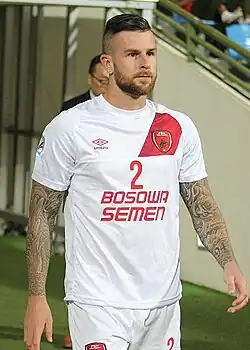After the demise of Lanexang United, Evans signed with Barito Putera in January 2017 for the 2017 President's Cup and 2017 Liga 1 competitions.[15] Debuting on 7 February 2017 in a Presidents Cup game against Borneo Samarinda, which ended 0–0, his Liga 1 debut came on 15 April 2017 in the season opening game against Mitra Kukar in a home match at May 17th Stadium. Barito won the game 2–1. After a good start to the league he scored his first goal in the third game when Barito played Perseru Serui.[16] He went on to play every minute of all 17 games played in Leg 1. At the completion of the 2017 Liga 1 season, Evans had played 31 games as a centre-back and defensive midfielder. His performances throughout the 2017 season saw him offered a contract extension for the 2018 Liga 1 season.[17]