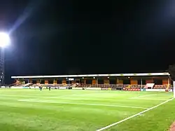 - The South Stand – a single-tier, all-seater stand, opened in 2002. This stand was primarily built to house away fans however it is often used to seat home supporters at ticket promotion matches. At the same time that the South Stand was constructed a new police control centre was built to the west of the stand. This building also houses emergency medical facilities for players and spectators. Through a sponsorship deal it is currently named the Mead Plant & Grab Stand, and has previously been named the Marston's Smooth Stand [13] and the Heritage Conservatories Stand through similar commercial arrangements.