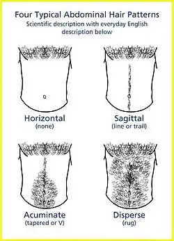 1. ^ Setty LR (May 1966). "Varieties of the acuminate abdominal hair pattern of white males". J Natl Med Assoc. 58 (3): 191โ€“3. PMC 2611109. PMID 5932294.