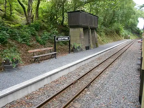 ![]() The water tower and platform 2 at Aberffrwd railway station. | |||||