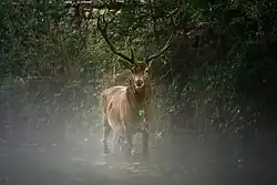 In greater numbers, in the thicker areas of the forest, are red deer and roe deer, reintroduced in the seventies, and the wild boar. Other reclusive inhabitants of the forest include European polecat, Eurasian badger, Eurasian otter and two species of marten; pine marten and beech marten. Higher, above the forest, Abruzzo chamois (Rupicapra pyrenaica ornata) live alone or in small groups.