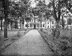 The Absalom Fowler House is a historic house at 503 East 6th Street in Little Rock, Arkansas. It is a two-story brick building, with a hip roof and a front portico supported by fluted Ionic columns and topped by a balustrade. The building is encircled by an entablature with modillion blocks and an unusual double row of dentil moulding giving a checkerboard effect. The house was built in about 1840 by Absalom Fowler, a lawyer prominent in the state's early history.[2] The house is now surrounded by a multi-building apartment complex.