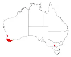 It is native to an area in the South West and Great Southern regions of Western Australia.[1] It is commonly found from around Nannup south east to around Denmark with another population near Albany.