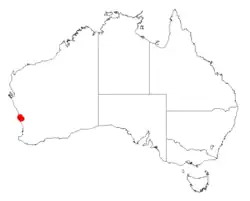 It is native to an area in the Wheatbelt and Mid West regions of Western Australia where it is found growing in gravelly, sandy or loamy soils over or around laterite.[1] It has a very limited range between Jurien Bay in the north down to around Eneabba in the south where it is usually as a part of low open woodland or low open heathland communities.[2]