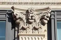 The shape of the leaf of this plant inspired the ancient Greek sculptor Callimachus (5th c. BCE) to model the capital of the Corinthian column. Since then, the Corinthian order column has been used extensively in Greco-Roman[18] and Classical architecture. For centuries, stone or bronze stylized versions of acanthus leaves have appeared as acanthus decorations on certain styles of architecture and furniture.[19] Virgil described Helen of Troy as wearing a dress embroidered with Acanthus leaves.[20]