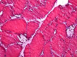 Glycogen storage disease type II (GSD-II), also called Pompe disease, and formerly known as GSD-IIa or Limb–girdle muscular dystrophy 2V, is an autosomal recessive metabolic disorder[1] which damages muscle and nerve cells throughout the body. It is caused by an accumulation of glycogen in the lysosome due to a deficiency of the lysosomal acid alpha-glucosidase enzyme (GAA). The inability to break down glycogen within the lysosomes of cells leads to progressive muscle weakness throughout the body and affects various body tissues, particularly in the heart, skeletal muscles, liver and the nervous system.