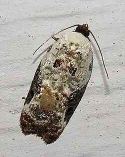 Snowy-shouldered acleris moth