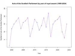 Line graph showing the number of acts of the Scottish Parliament by year of royal assent