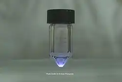 Cherenkov radiation from a sample of Ac-225 (17 mCi)
