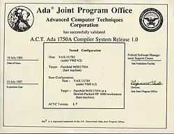 3. ^ "Ada Compiler Validation Capability (ACVC) Version 1.11 (Field-Test Release)". Defense Technical Information Center. June 1, 1989.