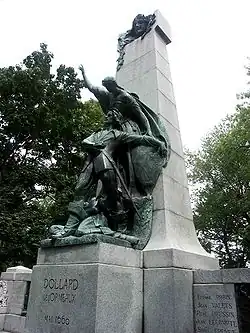 Adam Dollard des Ormeaux (July 23, 1635 – May 21, 1660) is an iconic figure in the history of New France (modern day Quebec). Arriving in the colony in 1658, Dollard was appointed the position of garrison commander of the fort of Ville-Marie (now Montreal). In the spring of 1660, Dollard led an expedition up the Ottawa River to wage war on the Iroquois. Accompanied by seventeen Frenchmen, Dollard arrived at the foot of Long Sault (near present-day Carillon, Quebec) on May 1 and settled his troops at an abandoned Algonquin fort.[1] He was then joined by forty Huron and four Algonquin allies.[2] Vastly outnumbered by the Iroquois, Dollard and his companions died at the Battle of Long Sault somewhere between May 9 and May 12, 1660. The exact nature or purpose of Dollard's 1660 expedition is uncertain; however, most historians agree that Dollard set out to conduct a "petite guerre" (ambush) against the Iroquois, in order to delay (or prevent altogether) their imminent attack on Ville-Marie.[3] For these reasons, Dollard is regarded as one of the saviors of New France.[4]